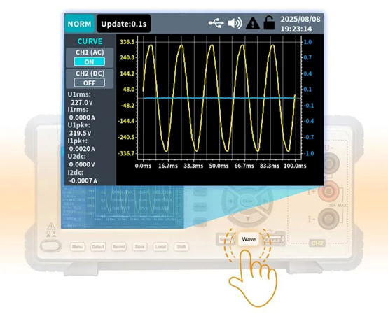 一鍵切換即時波形介面,不僅讓信號變化趨勢清晰直觀,更是分析諧波失真、評估開關瞬態、驗證相位關係及診斷電能品質問題的必備功能