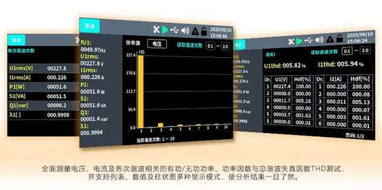 符合IEC61000-4-7諧波測量國際標準,最高可測量63次諧波,基波誤差<1%