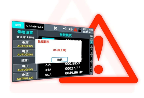 OWH9800系列提供電壓、電流、功率等多參數上下限告警設置功能,一旦數值超限立即發出警報,方便實現高效自動化測試、產線快速合格判定及設備安全守護