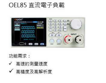 OWON利利普的OEL8500系列直流電子負載可精准測量關鍵參數,包括開路電壓(Voc)、短路電流(Isc)、峰值功率(Pmax)、峰值功率點電壓(Vmax)、峰值功率點電流(Imax)、填充因數(FF)等。通過高速採樣,確保動態環境下資料的準確性。